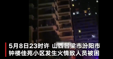 5月8日23時許,山西省呂梁市汾陽市鐘樓佳苑小區發生火情,初步判斷為四樓管道井電表箱著火。